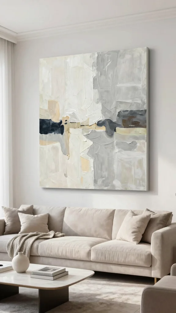 For a soft neutral look, focus on texture and restraint. Look for white wall art living room pieces with clean lines, such as minimalist prints, soft abstracts, or gallery-worthy canvases in white, ivory, or pale gray. Pair with frames in natural wood, white, or matte metals to keep neutral home decor cohesive. Mix a couple of small pieces around a larger centerpiece, or go with a single statement canvas to avoid visual clutter. Lighting matters too—soft, warm lighting helps the soft color palette feel welcoming rather than sterile. Pro tip: choose one texture (linen, canvas, wood) to add depth without introducing added color.