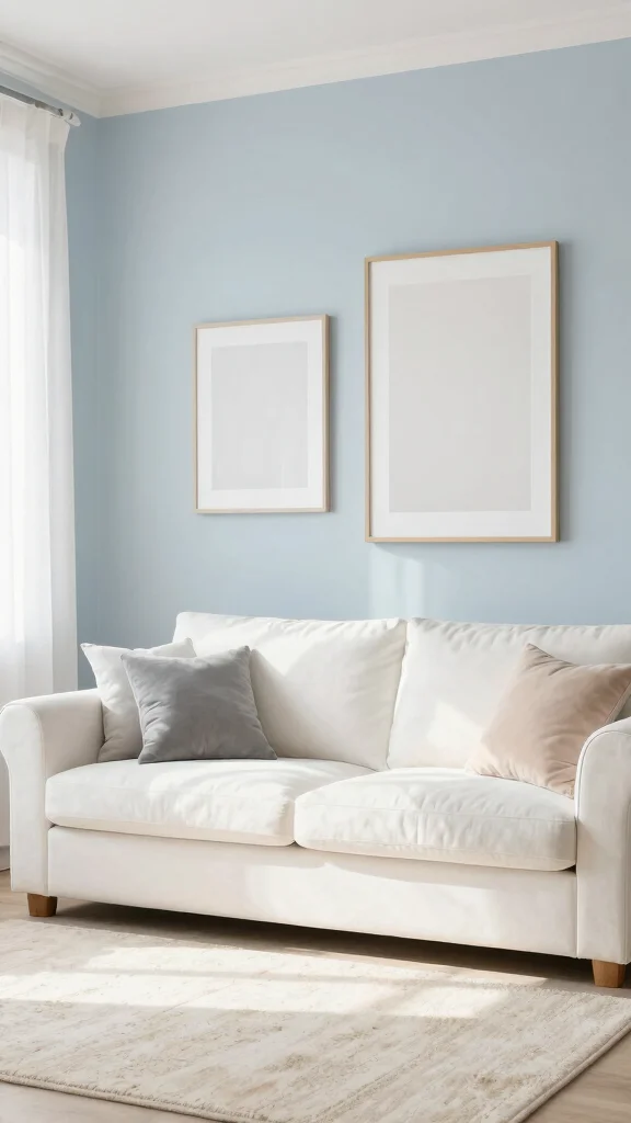 Soft color palettes are your best friend for white wall art living room setups. Pair muted blues or blush with clean white walls to instantly calm the space—no overwhelm, just warmth and serene simplicity.