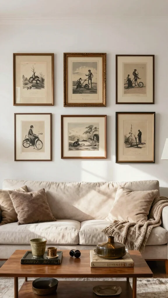 Integrating vintage finds into your living room decor adds character and history, particularly when paired with white wall art. Seek unique pieces that contribute charm without overwhelming your minimalist theme. Vintage prints or antique frames can enhance your decor’s narrative while keeping it soft and understated.