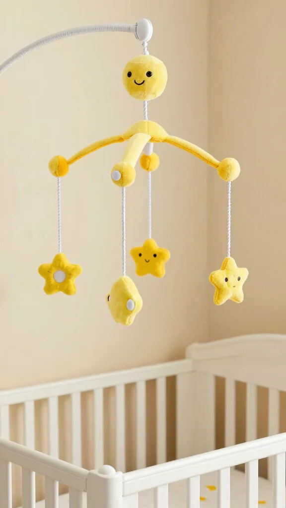 – Choose a yellow-themed mobile with stars, animals, or clouds.