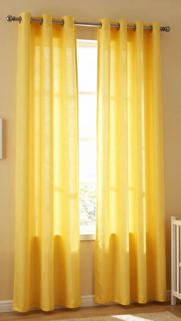 Curtains can significantly impact the atmosphere of a nursery. Bright yellow curtains not only filter natural light but also enhance the overall cheerfulness of the room. Choose organic cotton or linen fabrics that are eco-friendly and gentle for your baby.