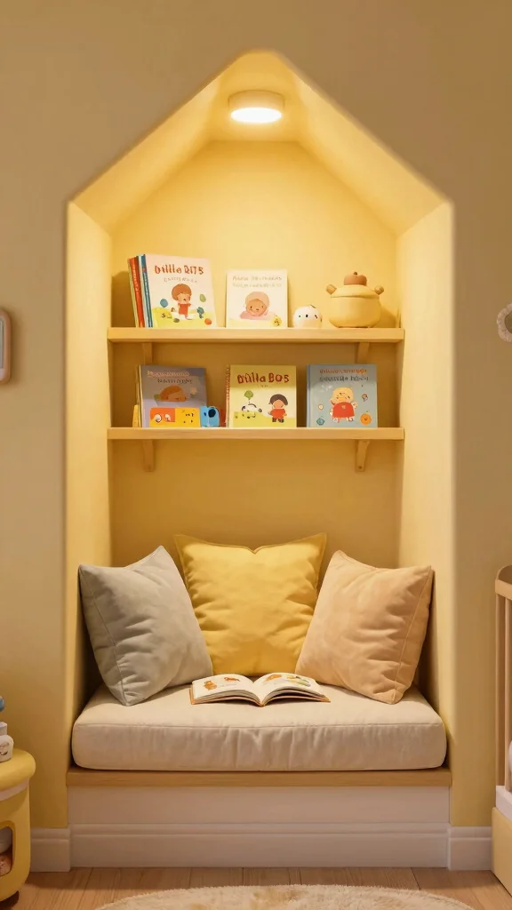 Designing a cozy reading nook in your yellow baby room can foster a love for books from an early age. Utilize soft cushions, a small bookshelf, and calming yellow hues to define this inviting space. A dedicated reading corner instills comfort and joy for both you and your baby while promoting literacy.