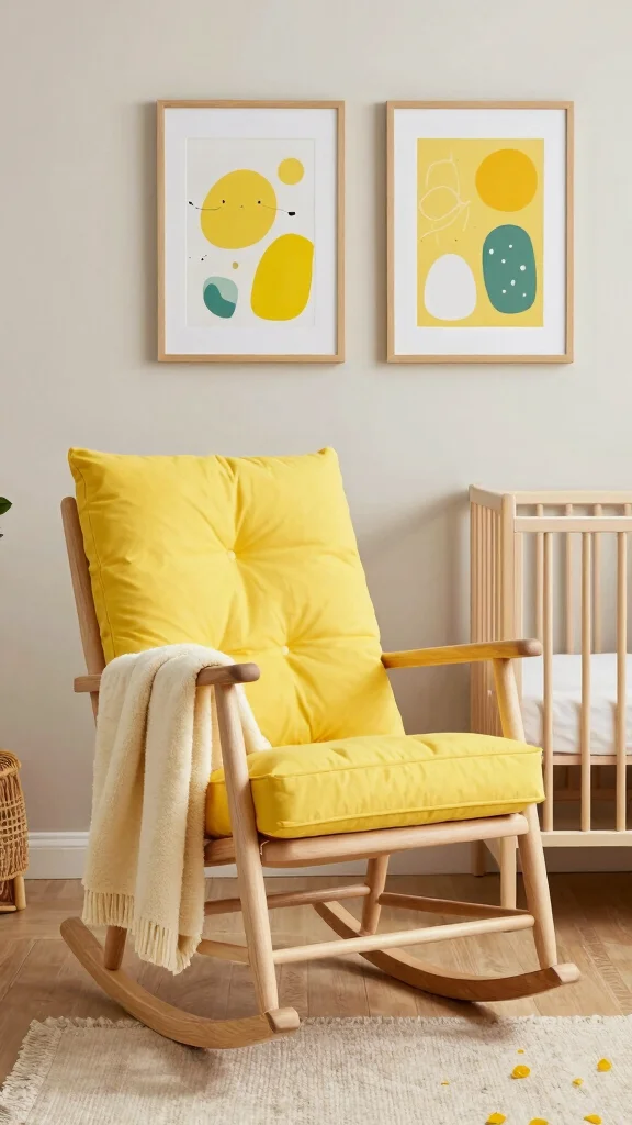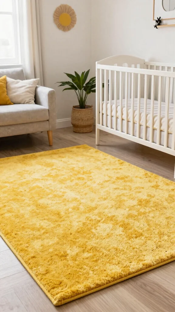 A bright yellow rug can be the heart of your baby’s room, adding warmth and definition to the space. Not only does it create a playful atmosphere, but it also serves as a soft area for tummy time and play. Look for options made from natural fibers or recycled materials to keep your nursery eco-friendly.
