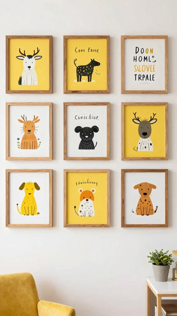 Wall art can dramatically shape the vibe of your child’s room. Add playful yellow-themed pieces that inspire joy and creativity, like fun animal illustrations or vibrant typography. Seek out eco-friendly prints or handmade creations from local artists to resonate with your style while being safe for your baby.